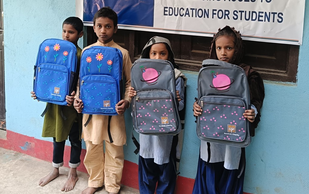 Essential school supplies packed in one kit to support underprivileged children. Each kit includes a school bag, notebooks, stationery, and other basic items to help students attend school with confidence and dignity.